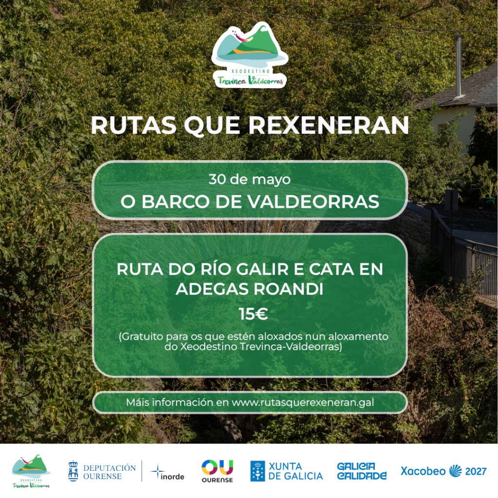 A Ruta Río Galir é unha experiencia perfecta para descubrir a beleza natural e o patrimonio fluvial de Valdeorras. O percorrido segue o curso do río Galir, un dos afluentes máis destacados do Sil, cuxas augas modelan unha paisaxe de gran valor ecolóxico e cultural.
