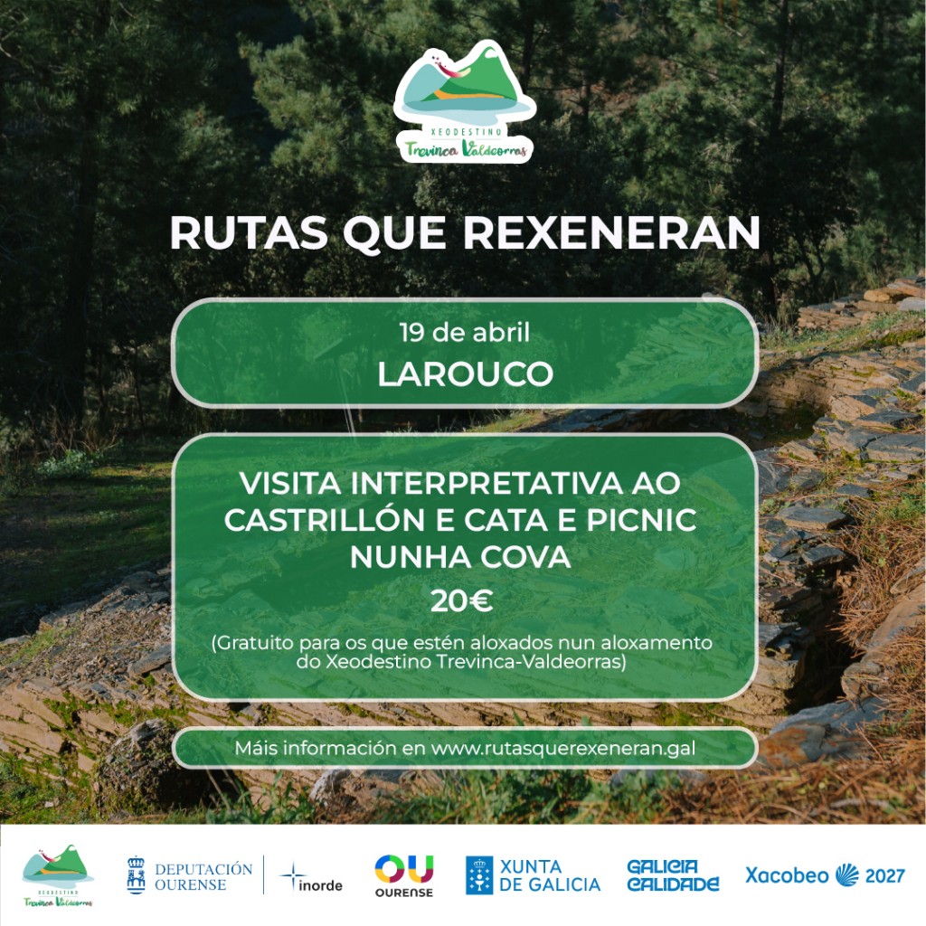 Esta ruta combina arqueoloxía, historia e paisaxe, ofrecendo unha experiencia completa para coñecer dous dos enclaves máis singulares de Larouco: o Castro de O Castrillón e as tradicionais Covas de Seadur.